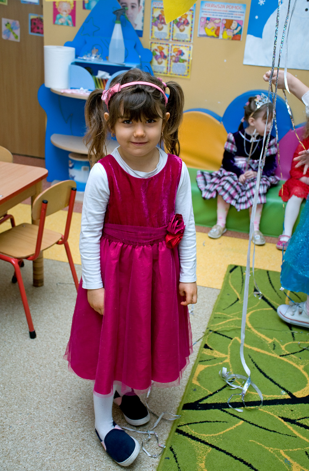 W piątek, 4 lutego nasza sala przedszkolna zamieniła się w zamkową salę balową, na której odbył się wspaniały bal. Przybyły przepięknie ubrane księżniczki oraz dzielni rycerze. Na początku odbyły się konkursy oraz zabawy integracyjne, a następnie tańce przy wesołej muzyce. Na uczestników balu czekał także wykwintny, słodki poczęstunek.