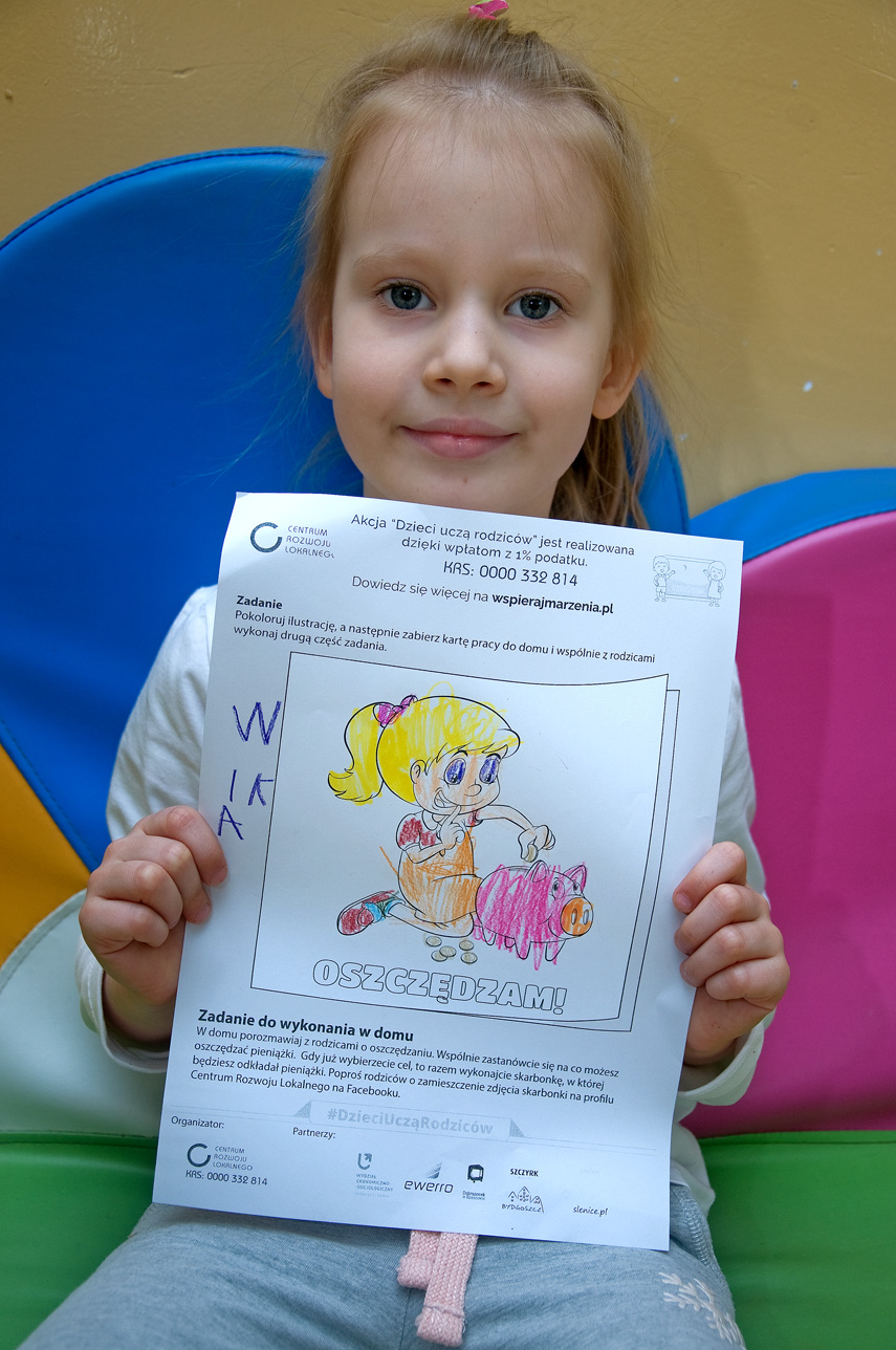 21 kwietnia 2021r. w naszym przedszkolu odbyła się piąta lekcja w ramach akcji "Dzieci uczą Rodziców", podczas której dzieci obejrzały prezentację multimedialną pt. "W świecie ekonomii". Przedszkolaki dowiedziały się co to jest pieniądz i jaka jest jego rola w życiu człowieka, poznały historię pieniądza i różnice między zachcianką a potrzebą, zapoznały się również z terminem "podatek". Na koniec lekcji dzieci otrzymały obrazki do pokolorowania związane z tematem lekcji.