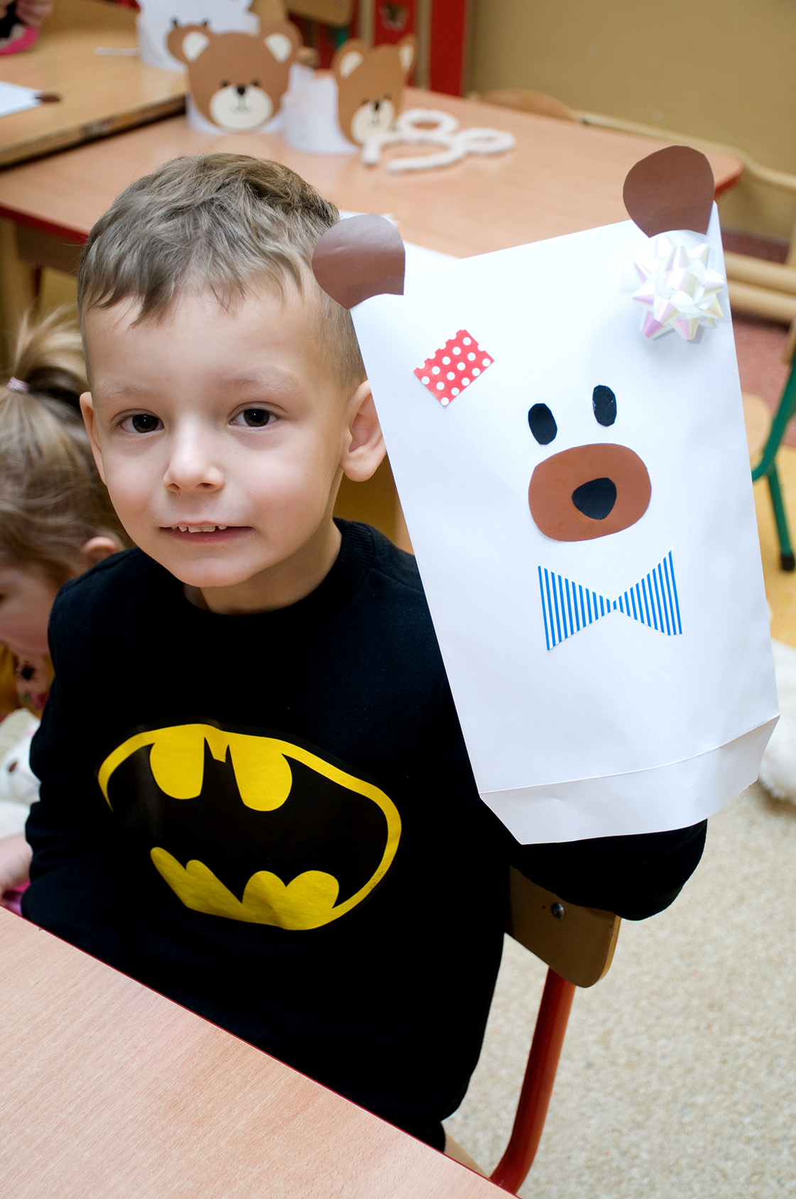 W tym wesołym dniu przedszkolaki czekało wiele atrakcji. Zostały zaproszone do wspólnej zabawy ze swoimi misiami, poznały historię ich święta, oglądały o nich bajki, prezentację przedstawiającą ilustracje i imiona różnych misiów, wykonywały misiowe karty pracy. Bawiły się m. in. przy piosenkach: "Pluszowy miś ,”Misie szare „ oraz ""Jadą, jadą misie", brały udział w różnych zabawach ruchowych, konkursach, quizach, zgadywankach, wykonywały prace plastyczne. Dzięki wsparciu rodziców dzieci dekorowały misiowe pierniki. Było pysznie.