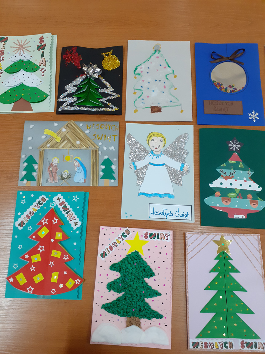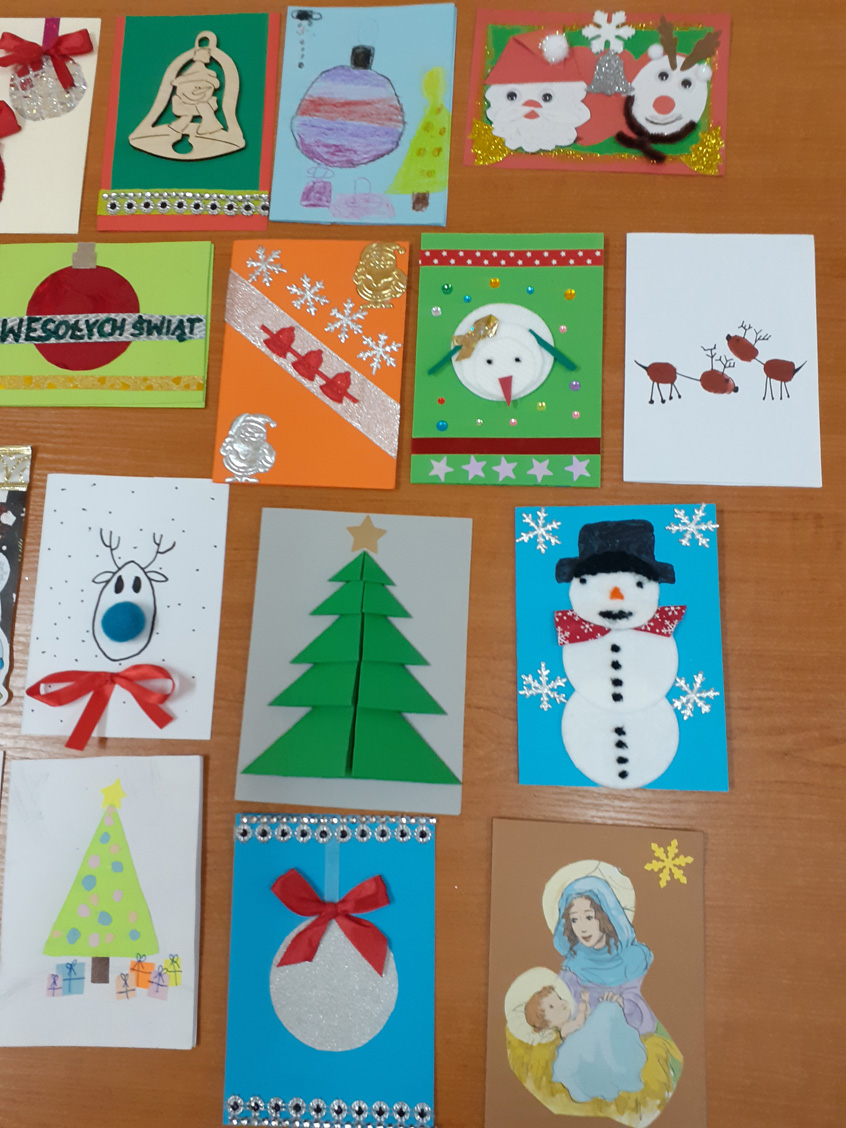 Szkolny konkurs na kartki bożonarodzeniowe spotkał się z dużym odzewem z Waszej strony, co nas bardzo cieszy. Wszystkie kartki, które do nas dotarły były piękne i niepowtarzalne. Dlatego też komisja, mając problem z wyłonieniem zwycięzcy, postanowiła przyznać upominki i dyplomy wszystkim uczestnikom. Gratulujemy!!!