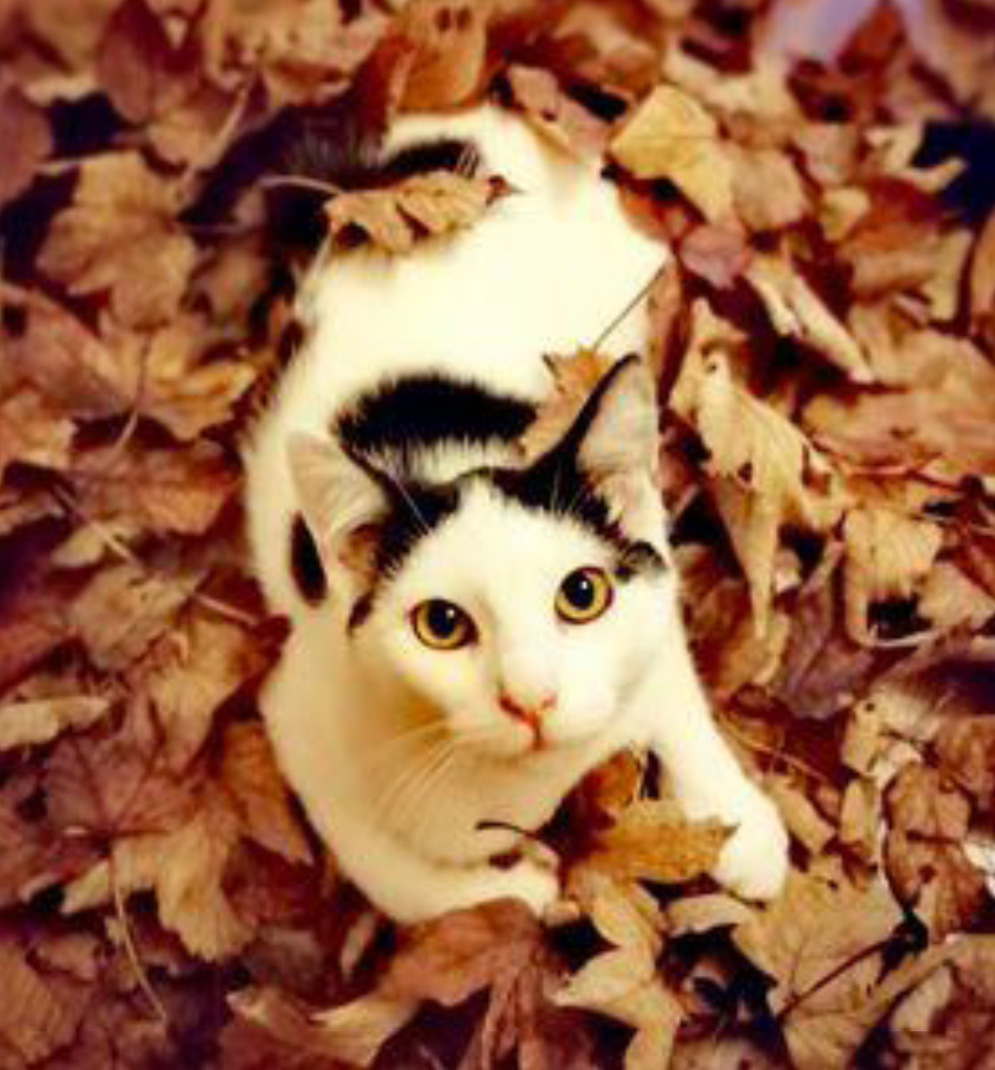 Na pierwszym planie widzimy żółte, jesienne liście wiśni wygrzewające się w promieniach słońca.