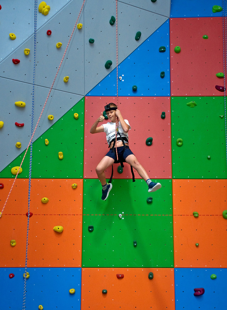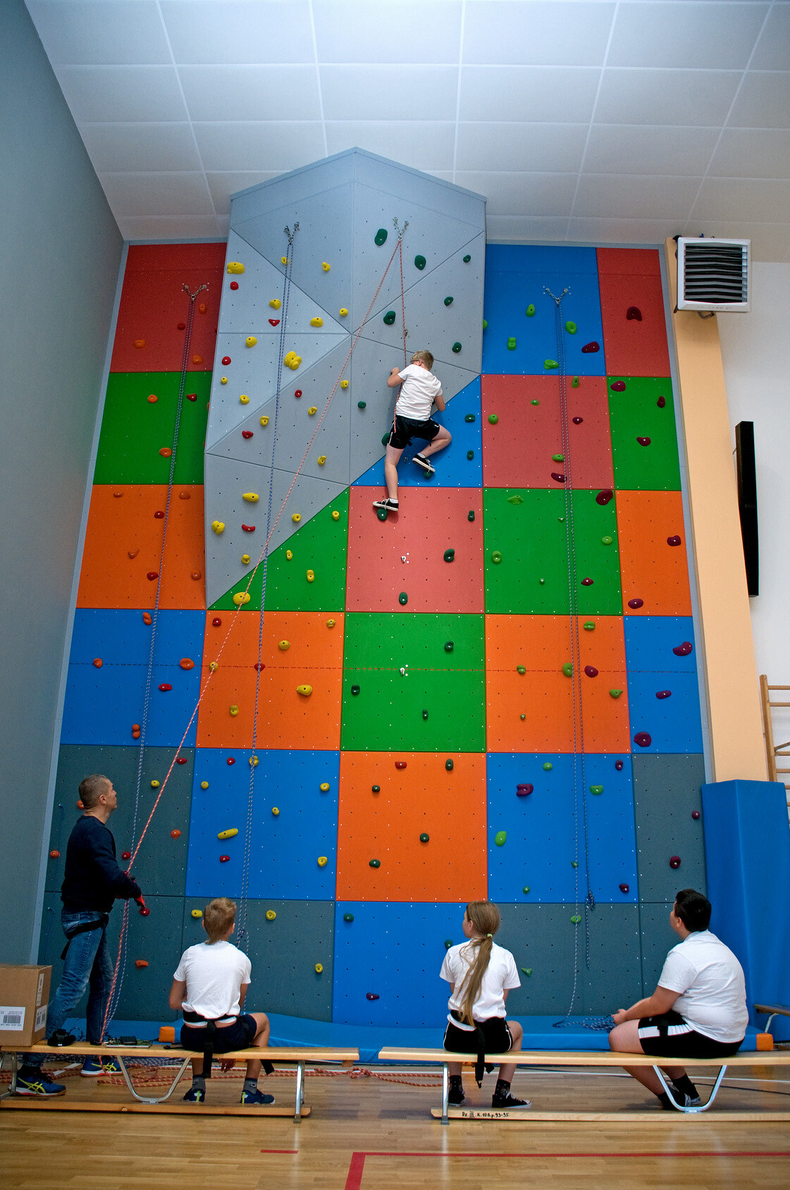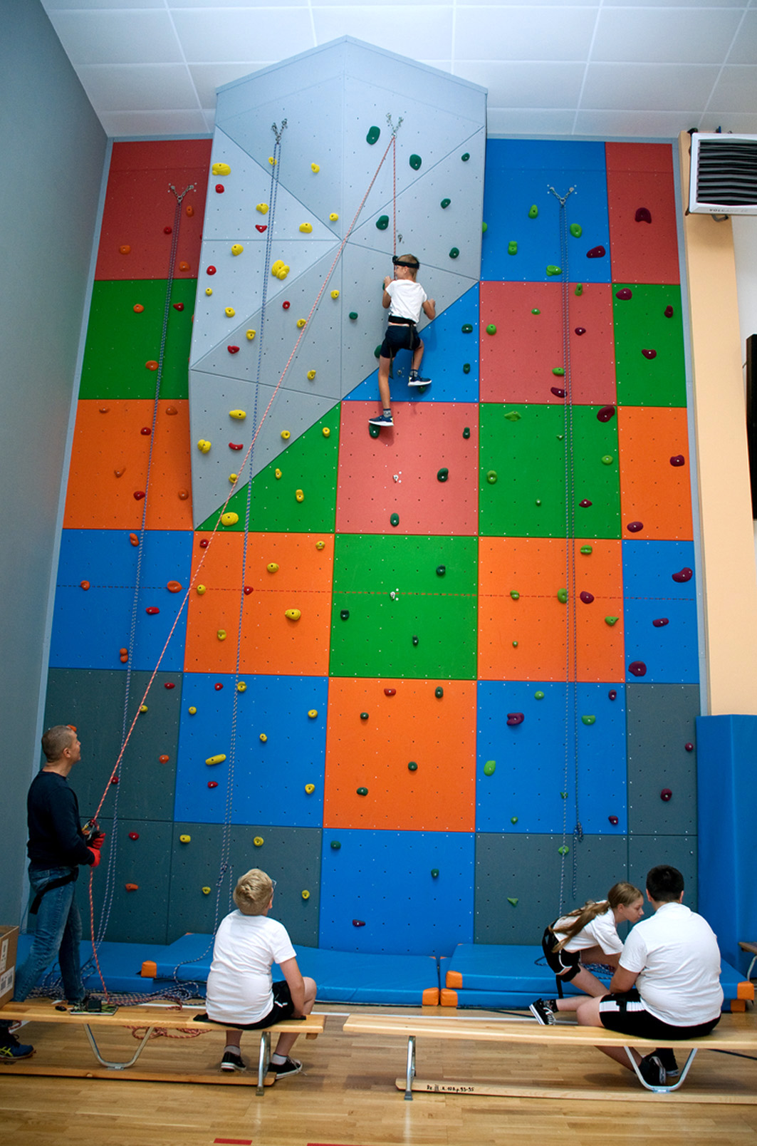 Ścianka wspinaczkowa znajdująca się na naszej sali gimnastycznej cieszy się ogromną popularnością wśród uczniów. W ramach lekcji wychowania fizycznego młodzież bardzo chętnie korzysta z tego rodzaju aktywności. W ten sposób nasi uczniowie m.in. rozwijają swoją sprawność, poprawiają kondycję fizyczną, spożytkowują nadmiar energii, pokonują własne słabości czy trenują koncentrację. Wspinaczka na sam szczyt jest dla nich również ekscytującym wyzwaniem.