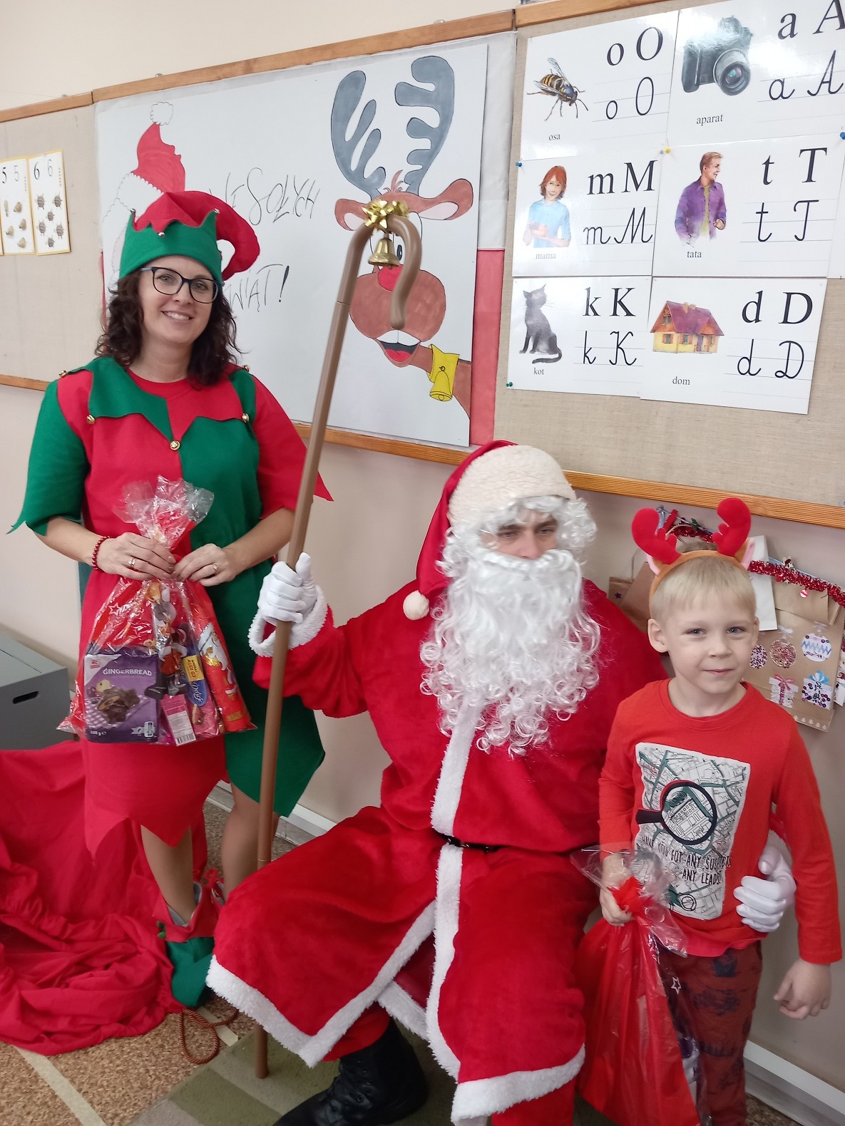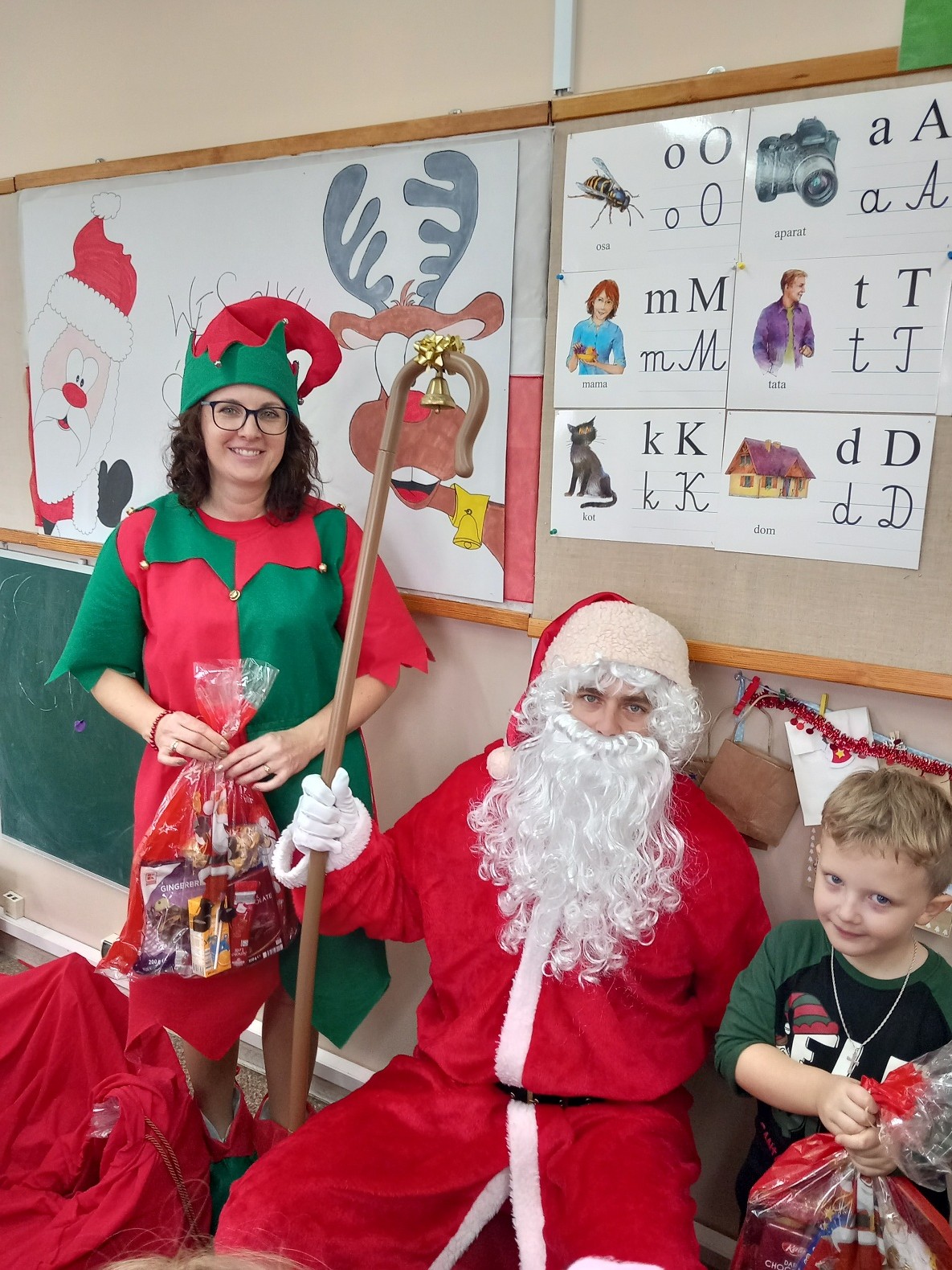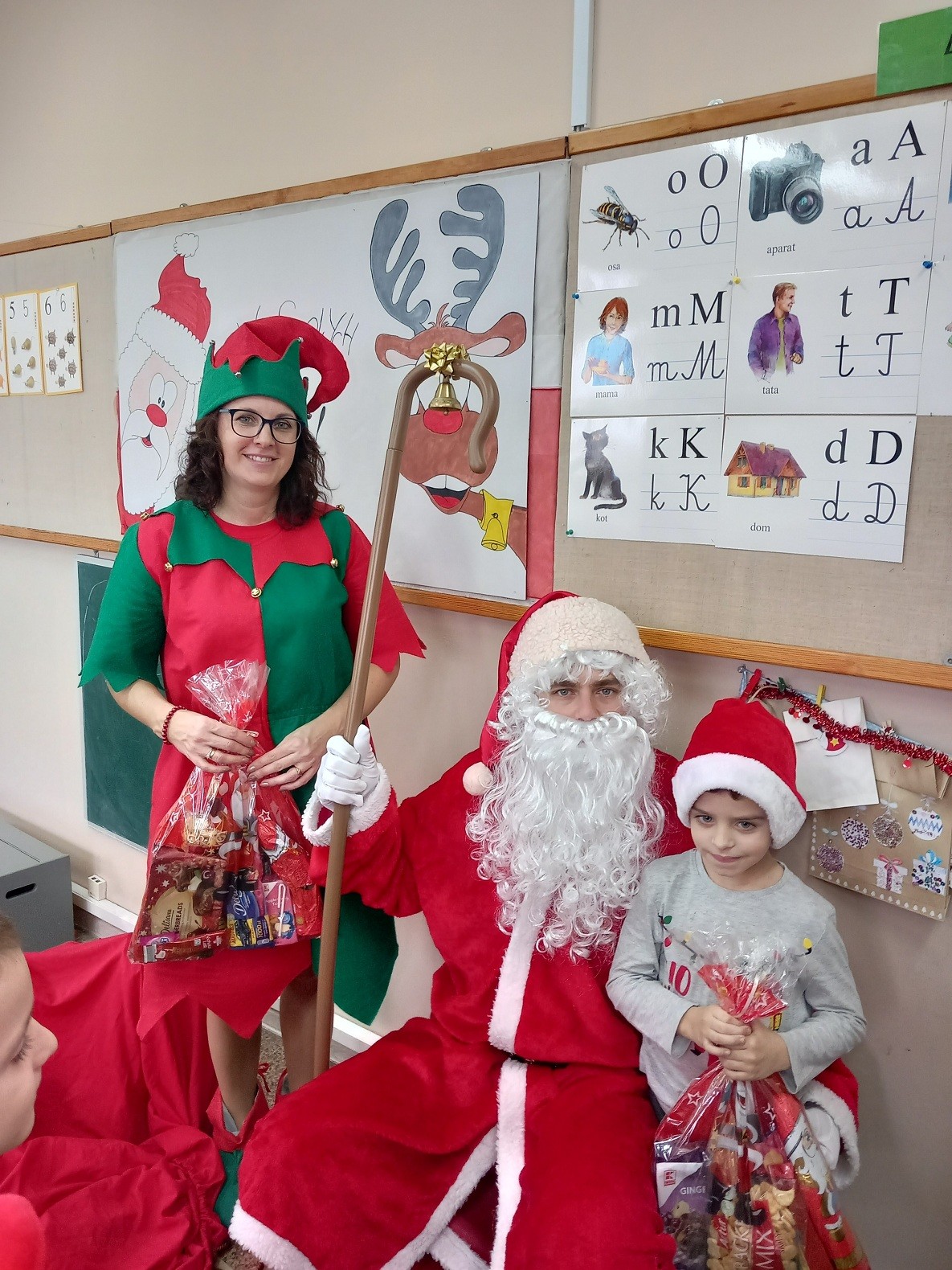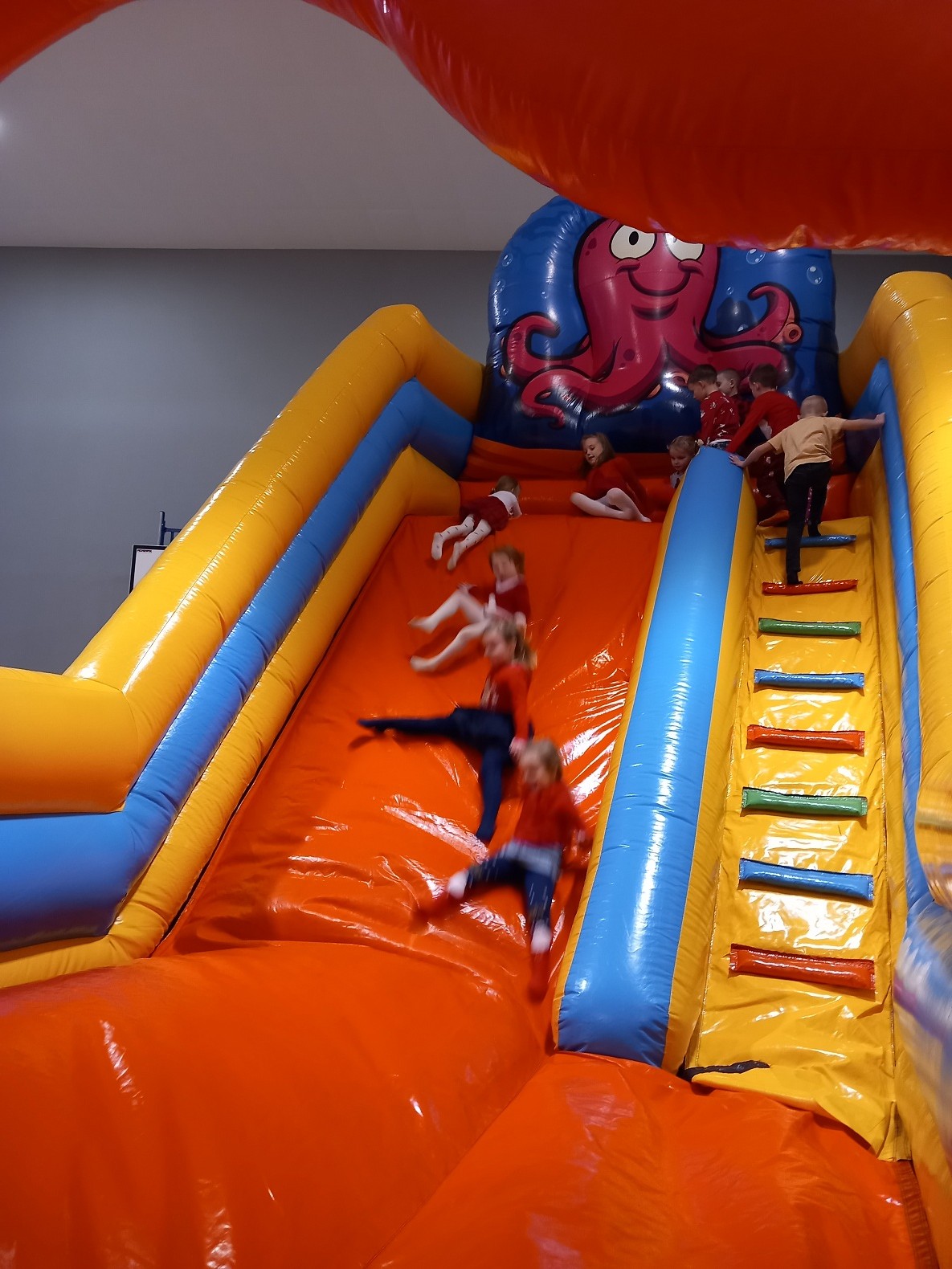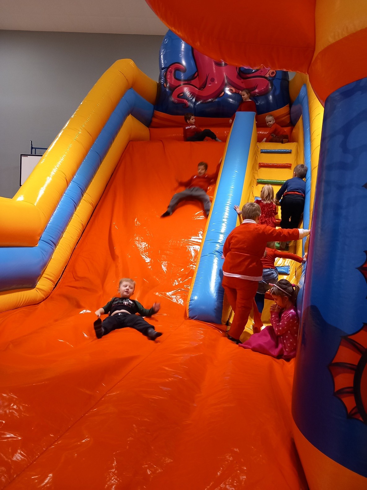 6 grudnia w naszej szkole z okazji Mikołajek pojawiła się duża, kolorowa dmuchana zjeżdżalnia, z której mogły skorzystać dzieci z oddziałów przedszkolnych oraz uczniowie z I i II klasy. Wszyscy świetnie się bawili. Każda z grup mogła poszaleć na dmuchańcu w wyznaczonym dla siebie czasie. Po radosnej zabawie na dzieci czekała jeszcze jedna niespodzianka. Odwiedził je Święty Mikołaj, który obdarował wszystkich prezentami.