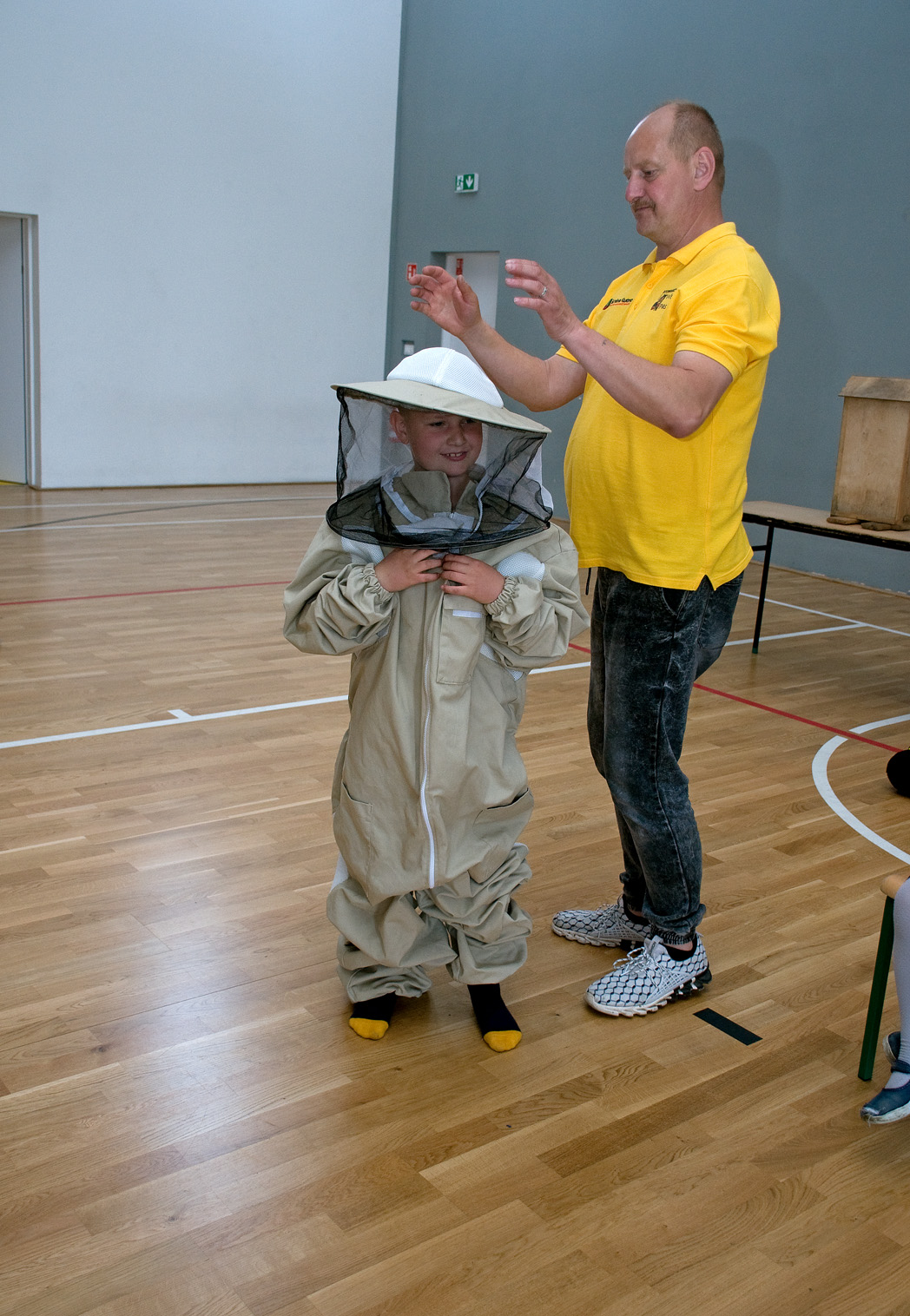 6 maja 2022 roku w naszej szkole odbyły się warsztaty, które poprowadził pszczelarz ze Stowarzyszenia „Wesoła Pasieka” pan Tomasz Wiśniewski. W warsztatach uczestniczyli uczniowie klas I – III oraz dzieci z Oddziałów Przedszkolnych. Wszyscy z wielkim zainteresowaniem wysłuchali opowieści o życiu i zwyczajach pszczół, o tym jakie znaczenie mają one dla otaczającej nas przyrody oraz dla człowieka, dowiedzieli się jak wygląda i ile trwa cykl życia pszczoły, jak powstaje miód. Pan Tomasz zaprezentował również specjalny strój pszczelarza, przyrządy, którymi posługuje się podczas pracy np. podkurzacz, opowiedział o budowie ula. Uczniowie mieli możliwość obejrzeć i powąchać pszczele produkty oraz zobaczyć jak widzi pszczoła. Na zakończenie każdy uczestnik warsztatów mógł przymierzyć strój pszczelarza oraz wykonać świeczkę z plastra wosku.