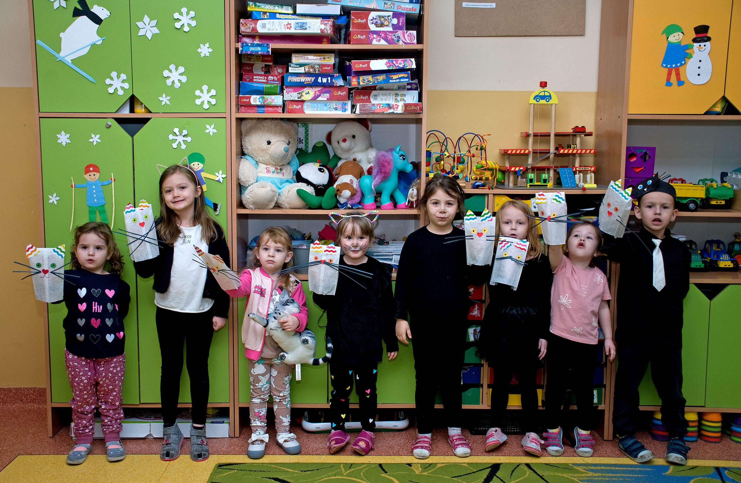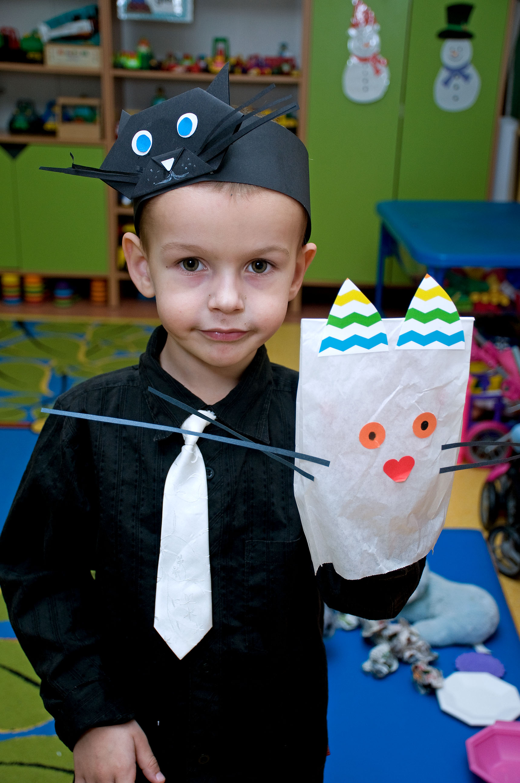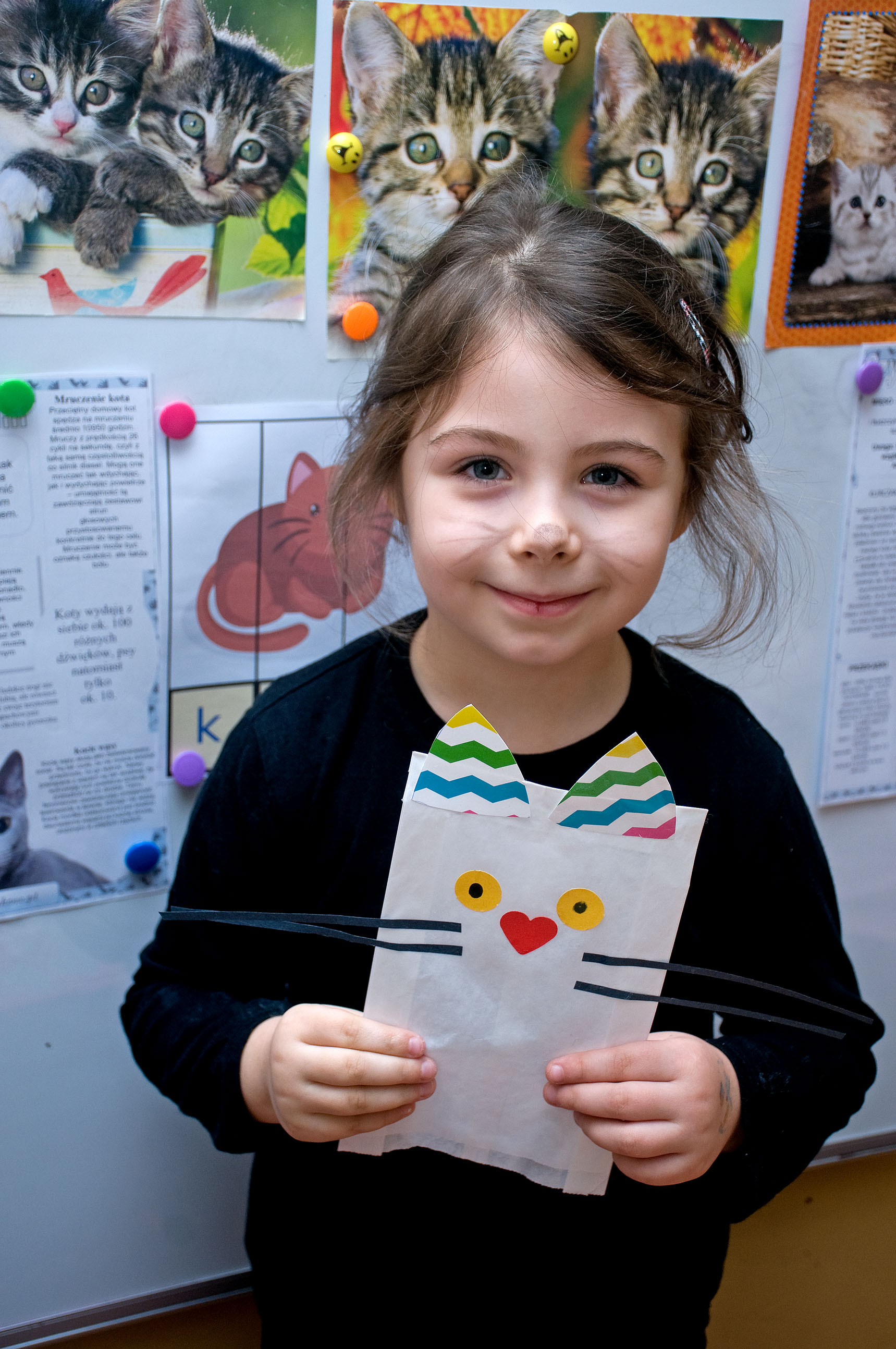 Światowy Dzień Kota to święto obchodzone co roku 17 lutego. Dzień Kota to nie tylko oddanie hołdu temu popularnemu zwierzęciu domowemu, ale również inicjatywa mająca na celu uwrażliwienie społeczeństwa na problem bezdomnych kotów i na często trudny koci los. W naszym przedszkolu również obchodziliśmy to święto. Aby uczcić wszystkie koty przedszkolaki upodobniły się tego dnia do tych niezwykłych stworzeń. Podczas zajęć dzieci bawiły się w "kocie zabawy", obejrzały prezentację multimedialną, z której dowiedziały się wielu istotnych informacji o naszych puszystych przyjacielach, m.in. poznały ich rasy, ich zwyczaje, dowiedziały się co lubią jeść, jak należy o nie dbać. Następnie dzieci rozwiązywały karty pracy z kotem w roli głównej, wykonały pacynkę przedstawiającą bohatera święta. Obejrzały również bajkę "Kot w butach" oraz wysłuchały opowiadania o kocie Filemonie. Przedszkolaki z wielkim zadowoleniem degustowały także mleko czekoladowe oraz pyszne kocie języczki.
