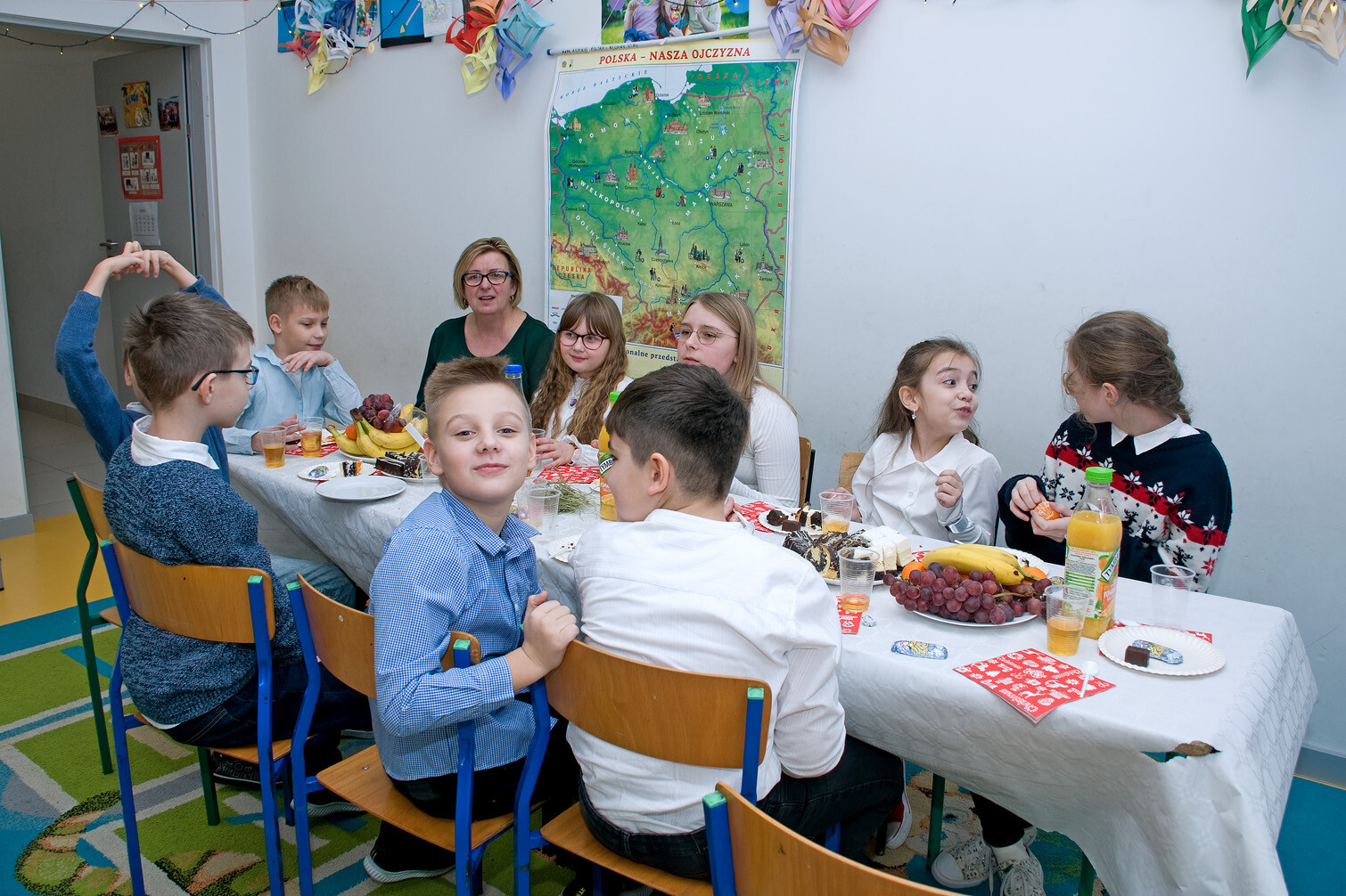 W piątek, tuż przed Świętami Bożego Narodzenia, odbyły się w naszej szkole Wigilie klasowe. W tym uroczystym dniu, przy pięknie nakrytych stołach, w odświętnych strojach, uczniowie i przedszkolaki dzielili się opłatkiem, składali sobie nawzajem świąteczne życzenia, a następnie wszyscy zasiedli przy wigilijnych stołach by celebrować nadchodzące święta