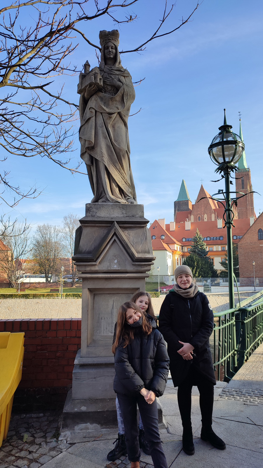 Wycieczkę rozpoczęliśmy od punktu widokowego, z którego mogliśmy podziwiać Ostrów Tumski – najstarszą, zabytkową część miasta oraz największą rzekę Wrocławia – Odrę. Na Ostrowie Tumskim oglądaliśmy powstałe przed kilkuset laty budowle: kościoły, pomniki, bramy, mosty. Zwiedziliśmy wnętrze najważniejszej świątyni Wrocławia – Katedrę pw. Jana Chrzciciela. Pani przewodniczka przybliżyła nam historię zabytków i związane z nimi ciekawostki.