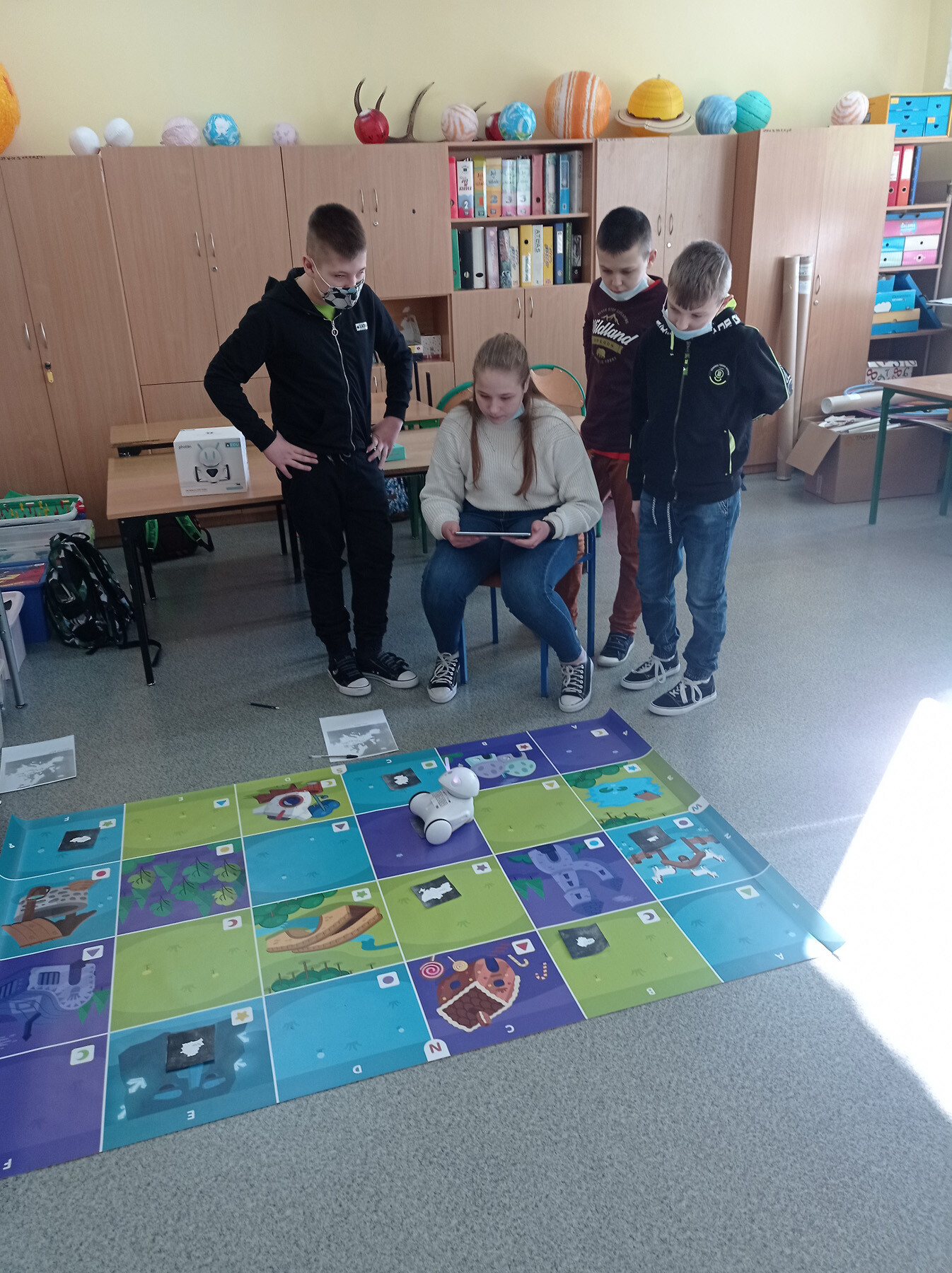 W naszej szkole prowadzone były zajęcia z robotem edukacyjnym Photon. Celem zajęć było ćwiczenie wyobraźni przestrzennej, uczenie projektowania i planowania tras, analizowanie problemów i tworzenie optymalnych rozwiązań. Zadanie uczniów polegało na zaprogramowaniu robota tak, aby ten pokonał przeszkody, znalazł właściwą drogę i dotarł do określonego celu.